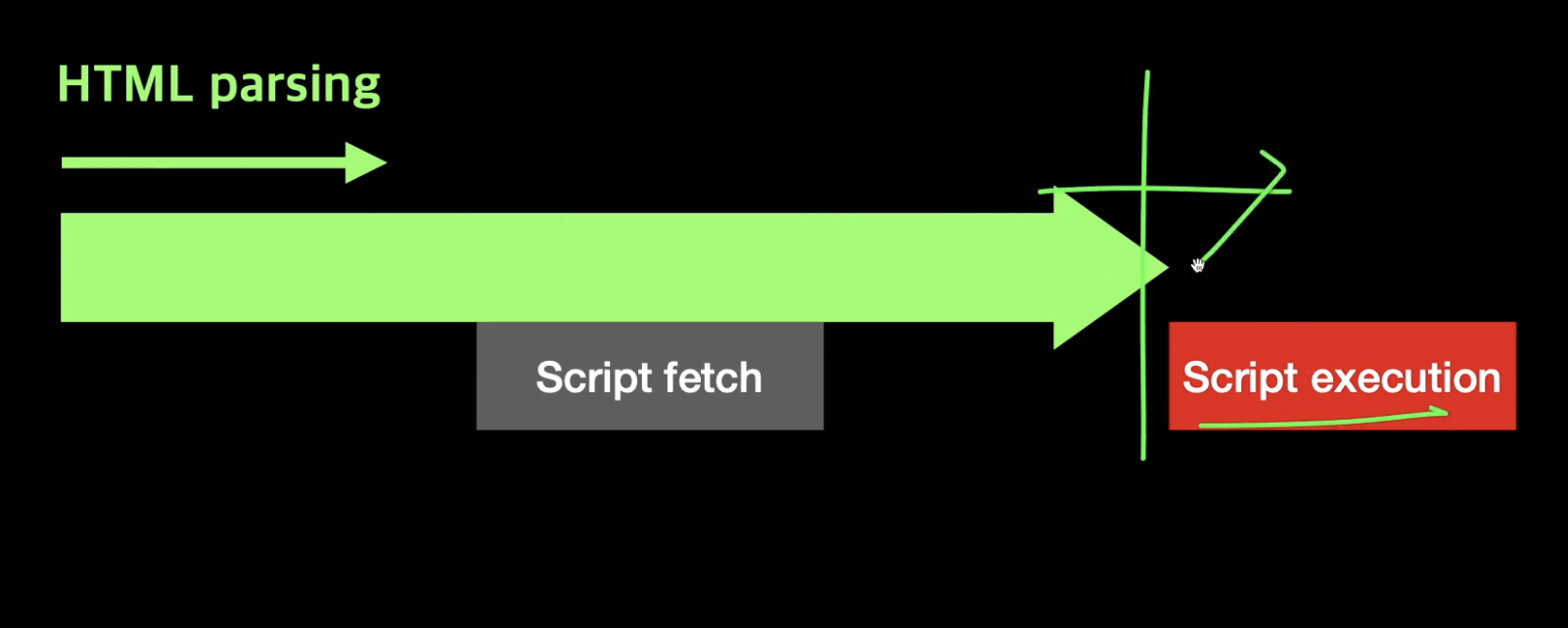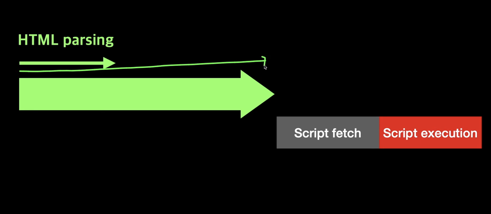 - 파싱과 스크립트 다운이 병렬적으로 실행됨