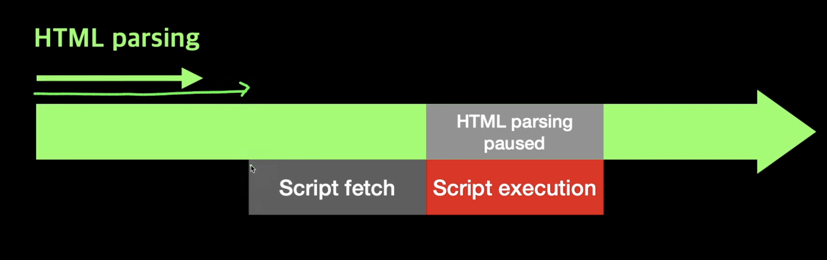 - HTML 파일을 위에서 아래로 순차적으로 파싱하다가 <script> 태그를 만나면 자바스크립트 파일을 가져와 실행함.