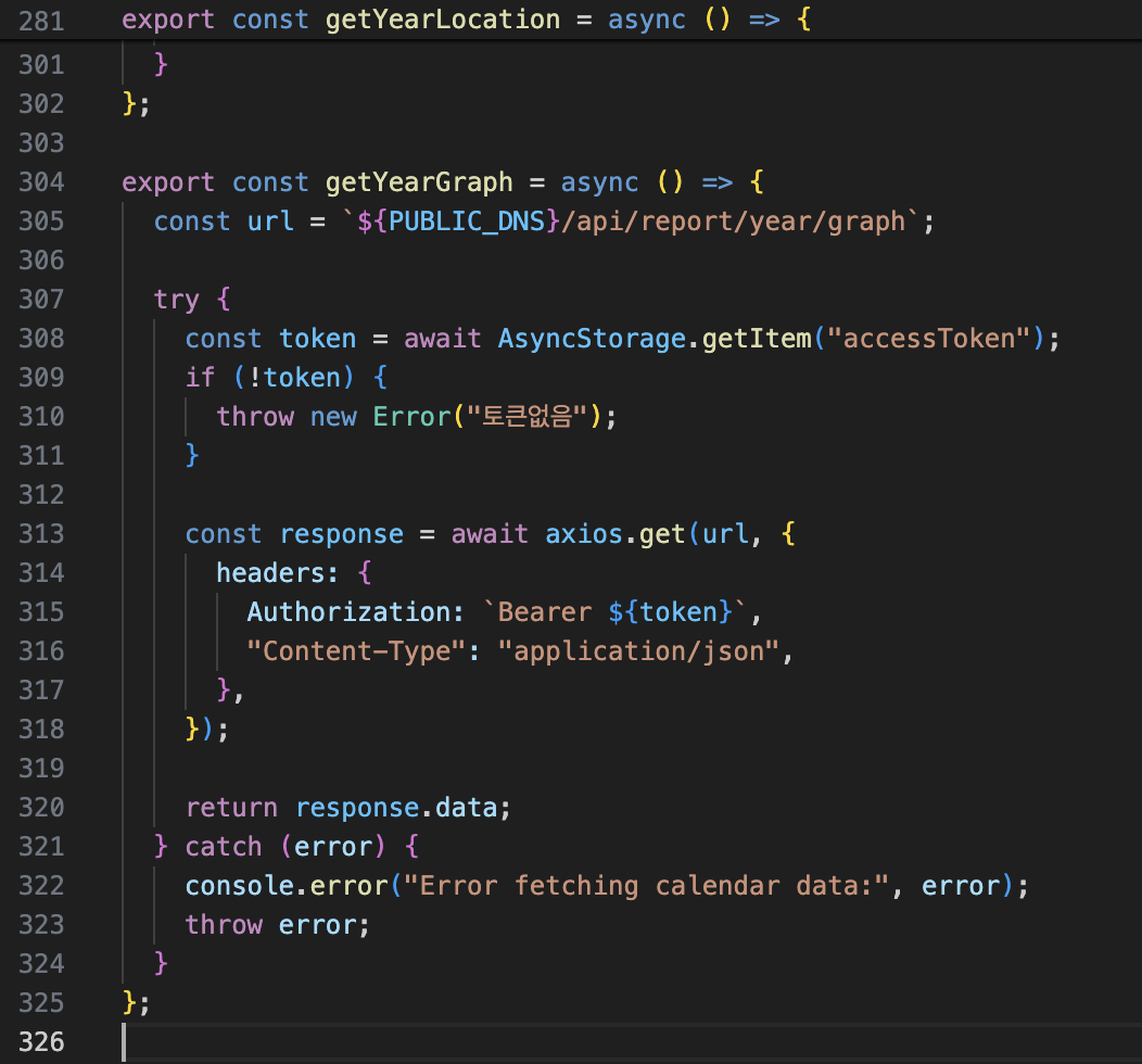 위에서 만든 fetchWithToken 함수를 사용하여 API 호출 함수를 단순화한다.