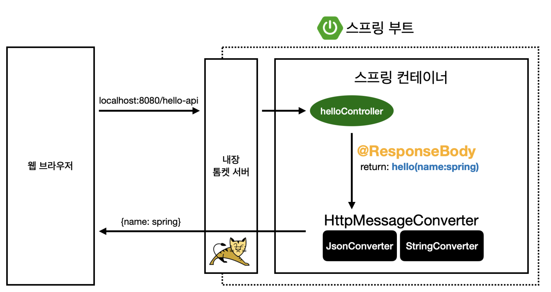 viewResolver` 대신에 `HttpMessageConverter가 동작