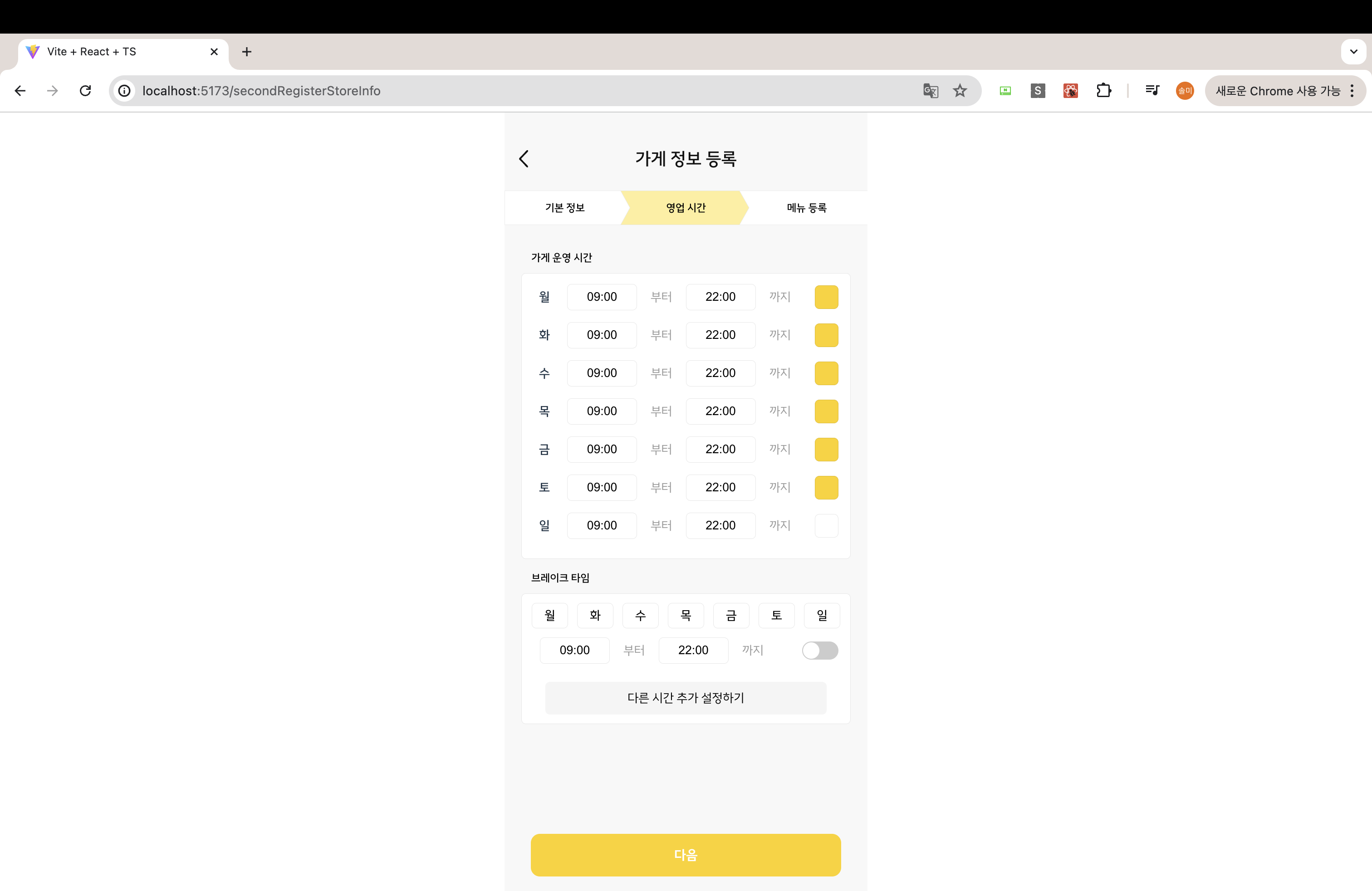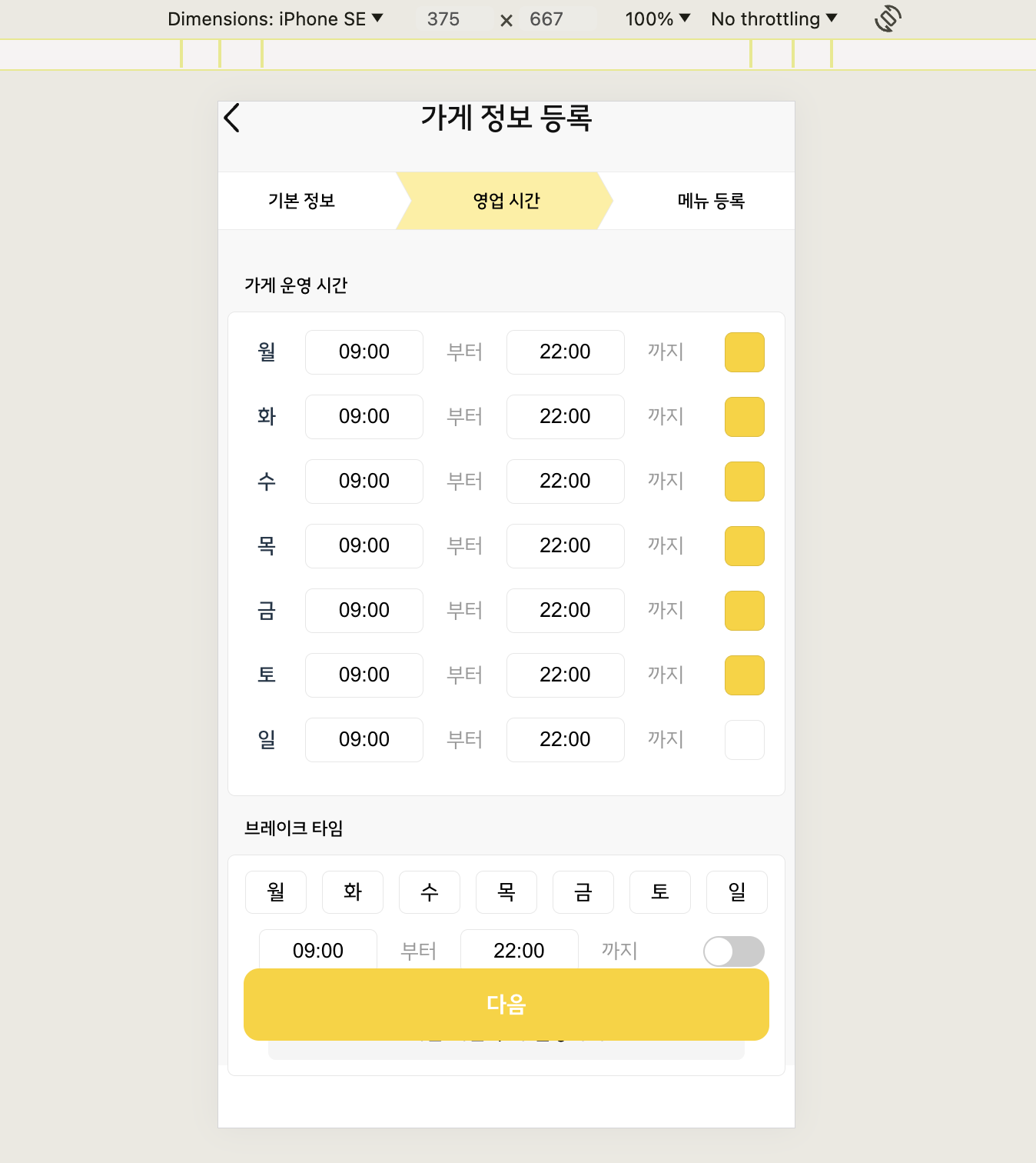 내가 개발할 페이지를 보면 단계별로 구성되어 있고 단계마다 다음 버튼이 하단에 위치해 있다.
