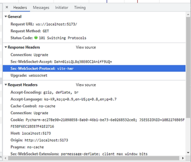 - Vite는 vite-hmr이라는 프로토콜을 사용
