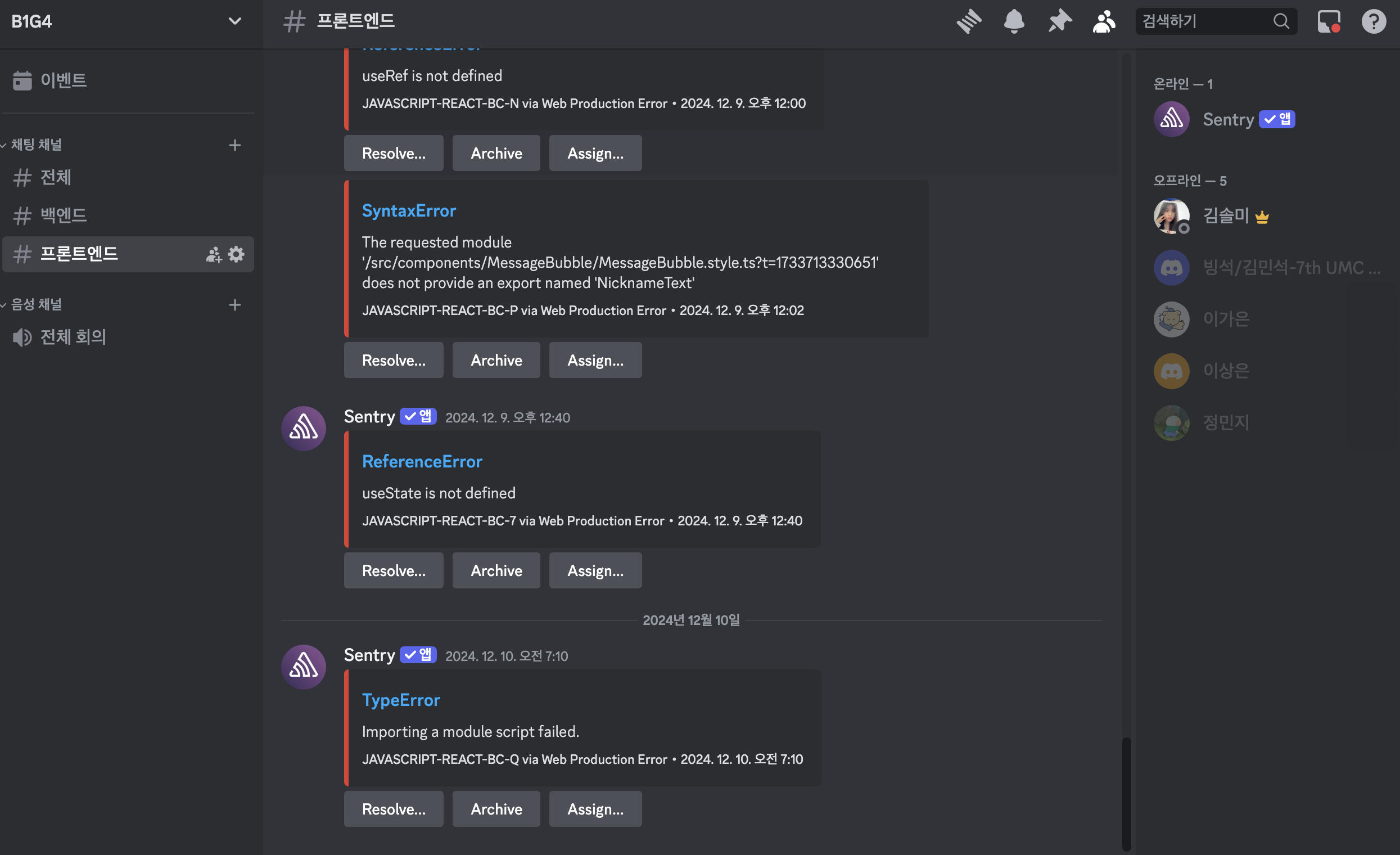 이렇게 설정하니 실제 에러 발생 시 Discord 채널에서 바로 확인이 가능해졌다.
