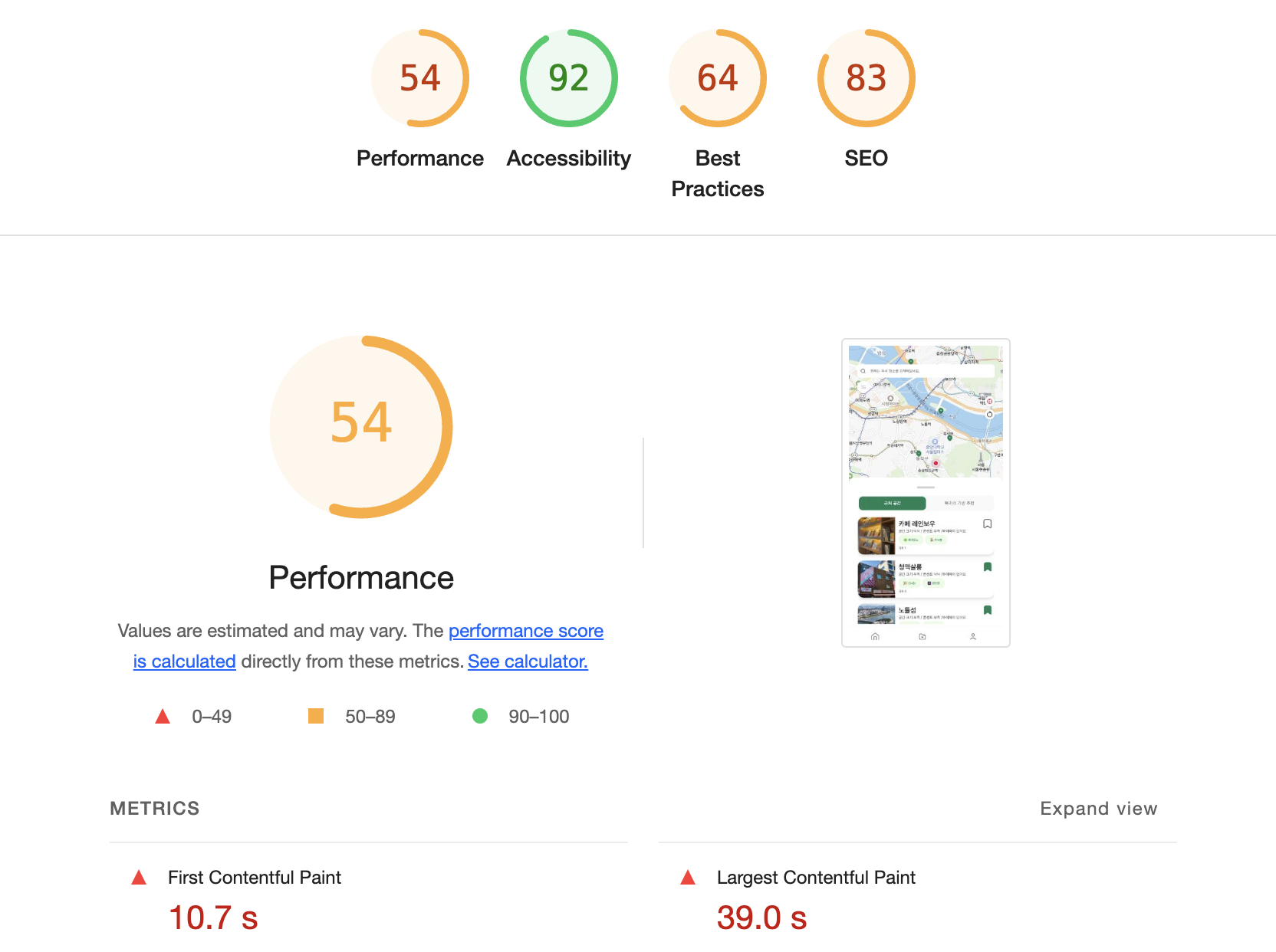 분명 홈 화면인데 마이페이지, 채팅 페이지, 저장한 장소 페이지 코드 등등... 이는 초기 번들 사이즈를 증가시켜 첫 페이지 로딩 시간이 길어지는 원인이 되었다.