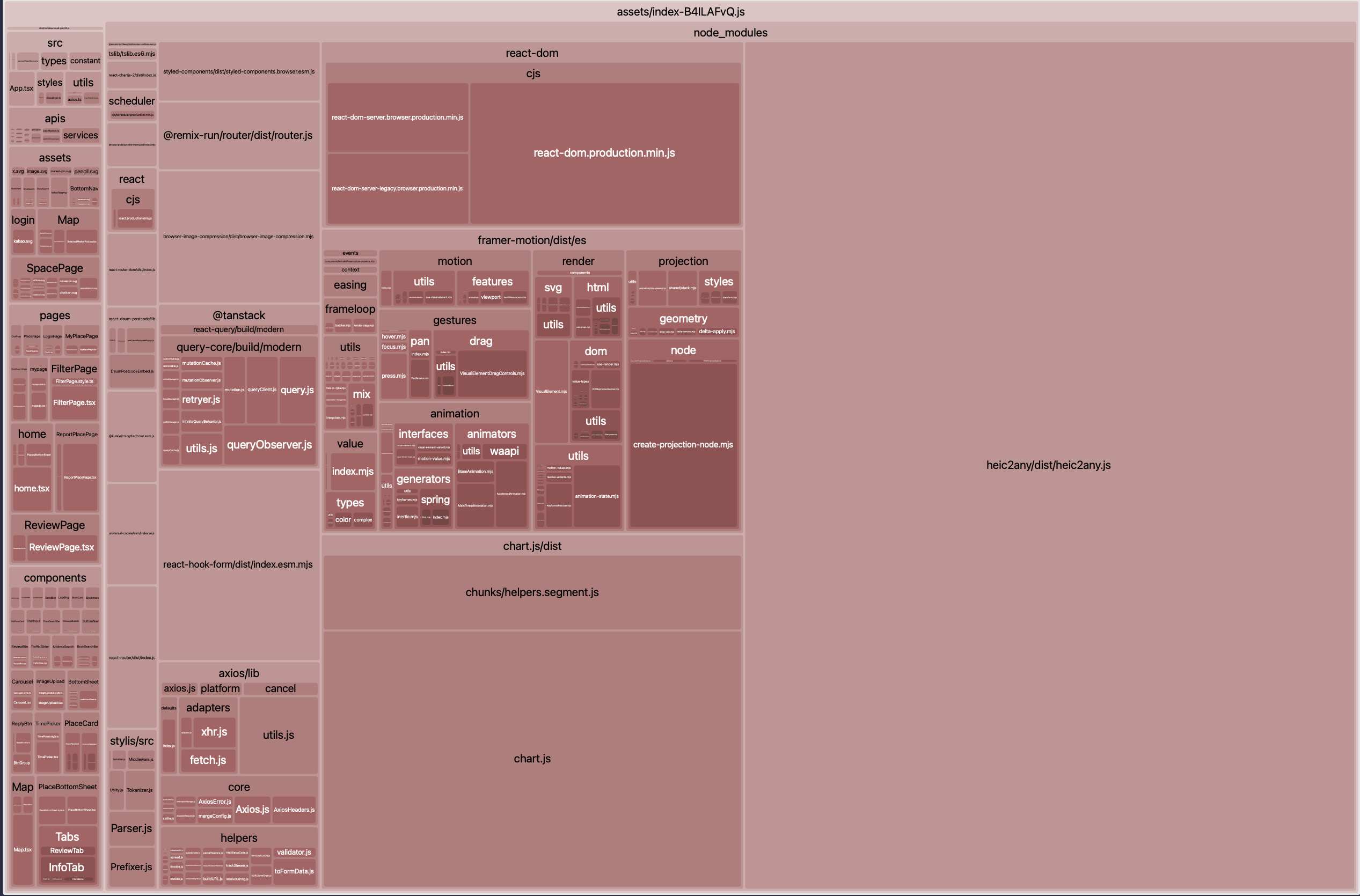 최적화에 앞서 현재 상태를 정확히 파악하기 위해 `vite-bundle-visualizer`를 사용했다.