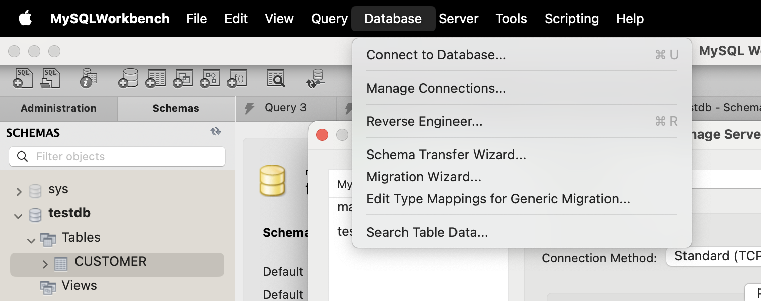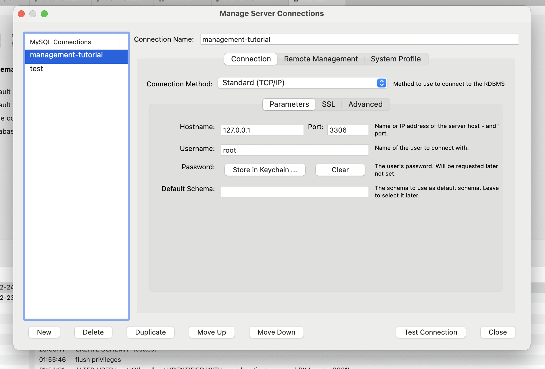 MySQL 워크벤치에서 Database - Manage Connections를 누르면