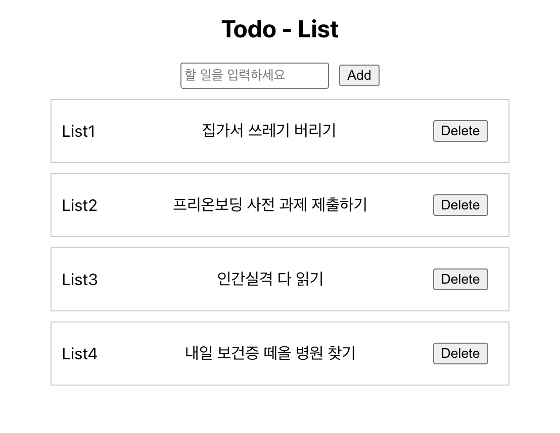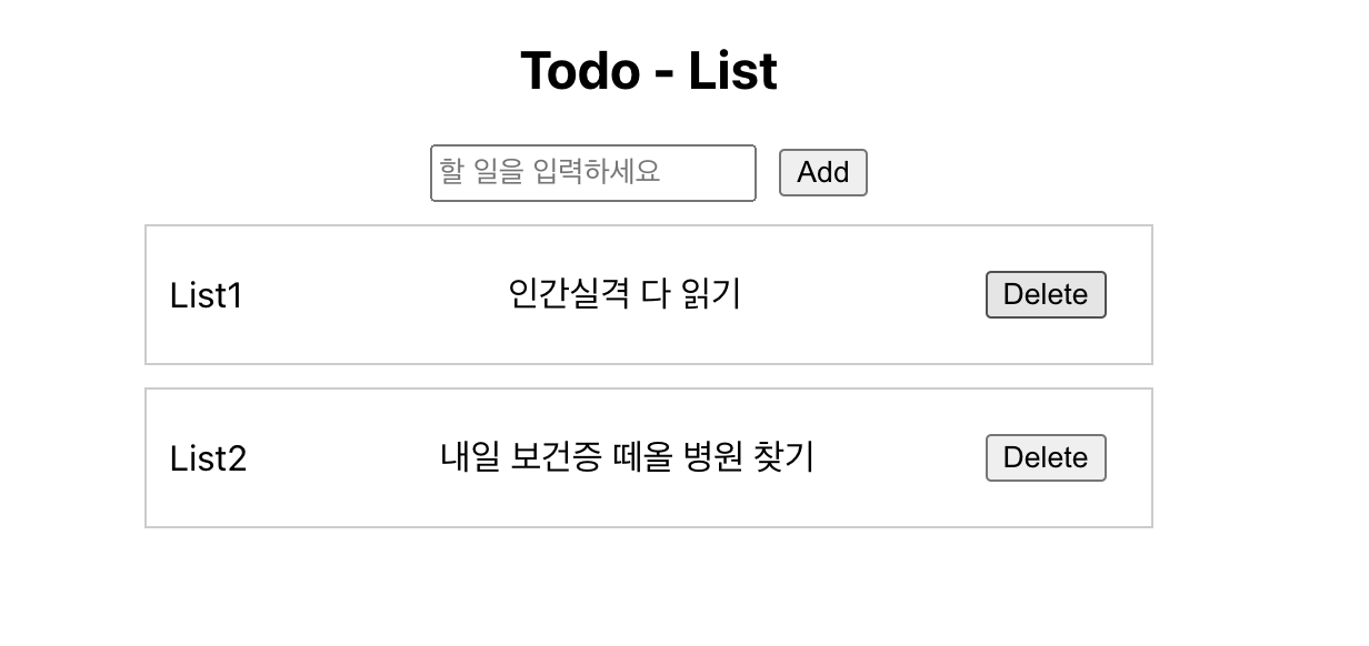 - 각 list의 delete 버튼을 누르면 해당 list 컴포넌트가 삭제됩니다.