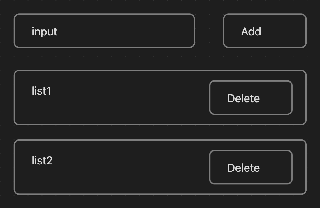 - input 창에 list1을 입력 후 Add 버튼을 누르면 input 창 하단에 list1 컴포넌트가 뜹니다.