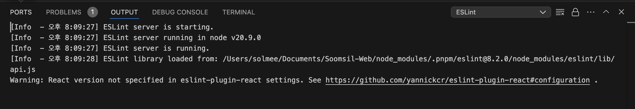 3. ESLint 출력 창 확인